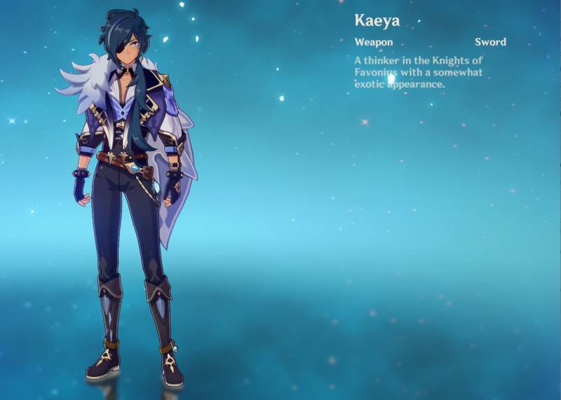 Kaeya is a melee character who wields a Sword and has the element Cryo as it’s attribution.